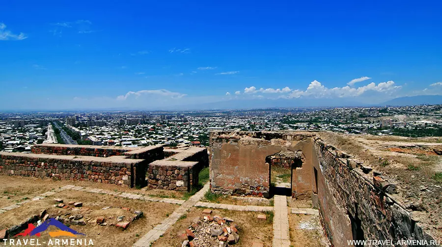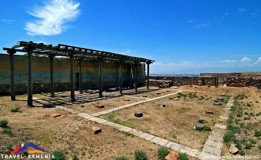 The citadel grounds housed the royal palace, residential buildings, and outbuildings, including enormous warehouses for storing provisions in case of a long siege. The royal windows, as is customary, looked out onto Ararat. The buildings, like those in modern Yerevan, were often finished with tuff.